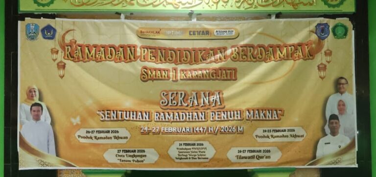 SMAKAR NEWS: Pada tanggal 24–27 Februari 2026 keluarga besar SMAN 1 Karangjati menyelenggarakan kegiatan istimewa bertajuk SERANA “Sentuhan Ramadhan Penuh Makna”. Kegiatan ini menjadi langkah awal untuk menyambut datangnya bulan Suci Ramadhan yang seolah mengetuk pintu hati setiap insan. SERANA bukan sekadar rangkaian kegiatan, melainkan jembatan yang menggugah semangat kebersamaan melalui nilai-nilai keislaman.